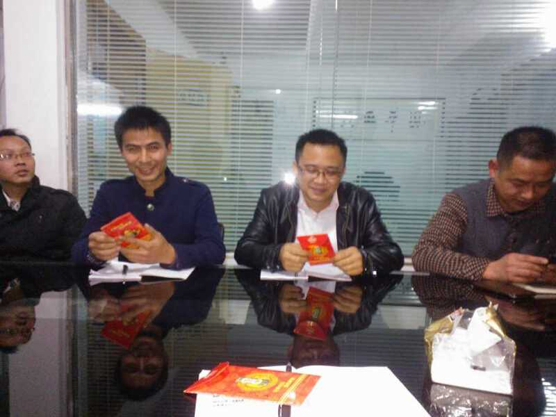 年終歲末,辭舊迎新,鵬耀電子科技有限公司召開了2014年度總結(jié)會(huì)議,公司全體班組成員參會(huì)。董事長(zhǎng)(胡永)、總經(jīng)理(周正恩)出席了本次會(huì)議并作了重要講話?偨Y(jié)了公司2014年度工作進(jìn)度和已完成的工作項(xiàng)目。為2015年的工作提出建議和要求。 會(huì)后對(duì)每位班組成員發(fā)放年終福利。
