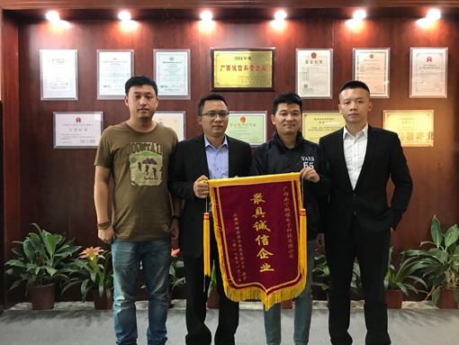 2017年11月14日,我公司長期合作的供應商:上海河姆渡實業(yè)發(fā)展有限公司來到我公司授予“最具誠信企業(yè)”錦旗。