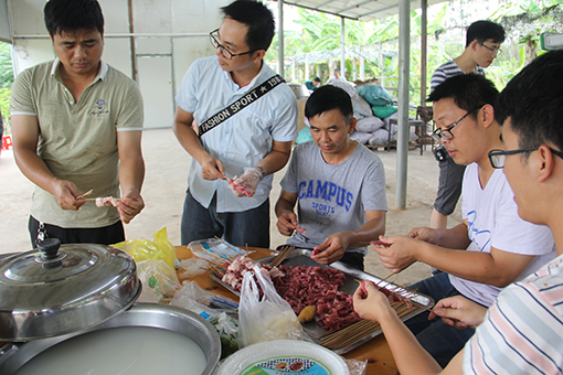 活動地址設(shè)在南寧郊區(qū),“遠(yuǎn)離喧囂,親近自然,活躍身心”是本次活動的主要目的。活動過程中,大家一起動手串烤串、一起燒烤,一起享受自己動手創(chuàng)造出來的美味,不亦樂乎!餐后,同事們還組織了籃球比賽和唱歌等活動,看到活躍在籃球場上的身影,富有活力,為了團(tuán)隊的榮譽(yù),在球場上揮汗如雨, 給我們展現(xiàn)了他們工作外的激情。