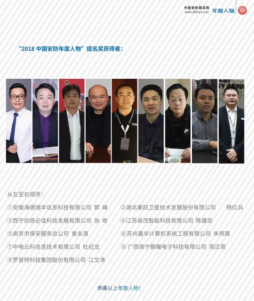 我公司總經(jīng)理周正恩同志憑借18年來的行業(yè)積累及其在安防智能化行業(yè)的綜合影響力,經(jīng)過協(xié)會的推薦,組委會各評審專家的專業(yè)評審后,獲得了“第二屆中國安防年度人物”提名獎殊榮。
