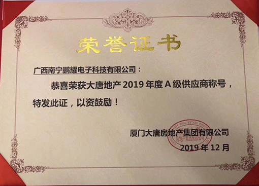 2019年12月26日,公司總經(jīng)理周正恩前往福建廈門參加“心溝通 新跨越”大唐地產(chǎn)2019年度供應(yīng)商答謝會(huì)活動(dòng),并在會(huì)上領(lǐng)取2019年度大唐地產(chǎn)優(yōu)秀(A類)供應(yīng)商獎(jiǎng)項(xiàng)。